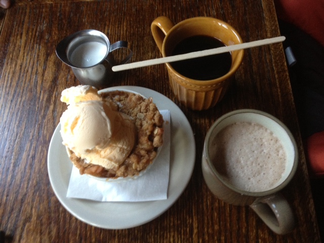 Our tradition is to eat an apple crisp and ice cream. Oh, and coffee too.