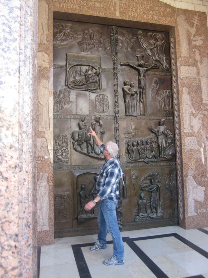 Our tour guide explaining the significance of this door, leading into the site where the Angel is said to have appeared to Mary